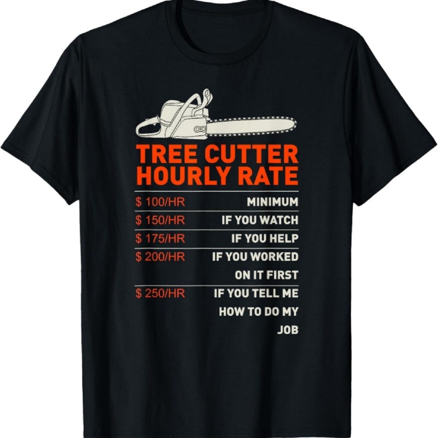 Men's Tree Cutter Hourly Rate - Chainsaw - Funny Arborists T-Shirt Black Short Sleeve Classic Fit Crew Collar Crew Neck Straight Hemline T-Shirt Small