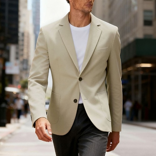 Per uomo Blazer Affari Cocktail party Ricevimento di matrimonio Moda Casual Primavera Autunno Poliestere Semplice Tasca Bottoni Confortevole Monopetto Giacca Nero Rosso Verde Grigio