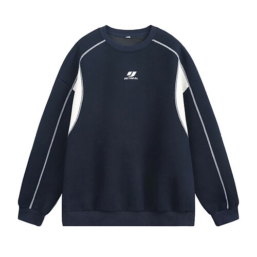 Per uomo Maglia Aalbicocca Blu marino Girocollo Blocco di colori Patchwork Sport Outdoor Quotidiano Ferie Poliestere Streetwear Essenziale Casual Primavera Autunno Abbigliamento Felpe con cappuccio