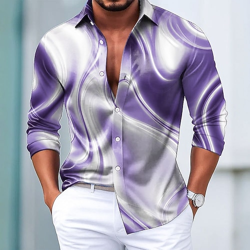 Per uomo Geometrico Colore sfumato Arte astratta Camicia Camicia in raso Camicia elegante Manica Lunga Moda Casual Vacanza Abbigliamento Quotidiano Estate Primavera Autunno Collo ripiegato Stampa 3D