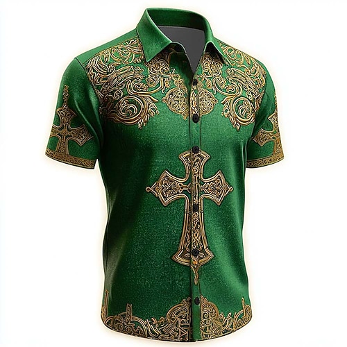 Festa di San Patrizio Per uomo Stampa Floreale Croce celtica Arte celtica Camicia Camicia con Bottoni Manica Corta Vintage Retrò Feste Ferie Estate Primavera Collo ripiegato Stampa 3D camicie con