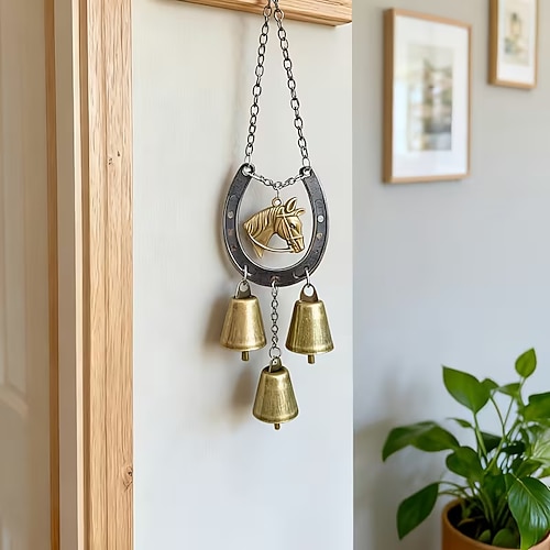 un carillon a forma di gufo a ferro di cavallo portafortuna, carillon a forma di amore in ferro da esterno, design vintage a ferro di cavallo, carillon a forma di chiodo in ferro per San Valentino,