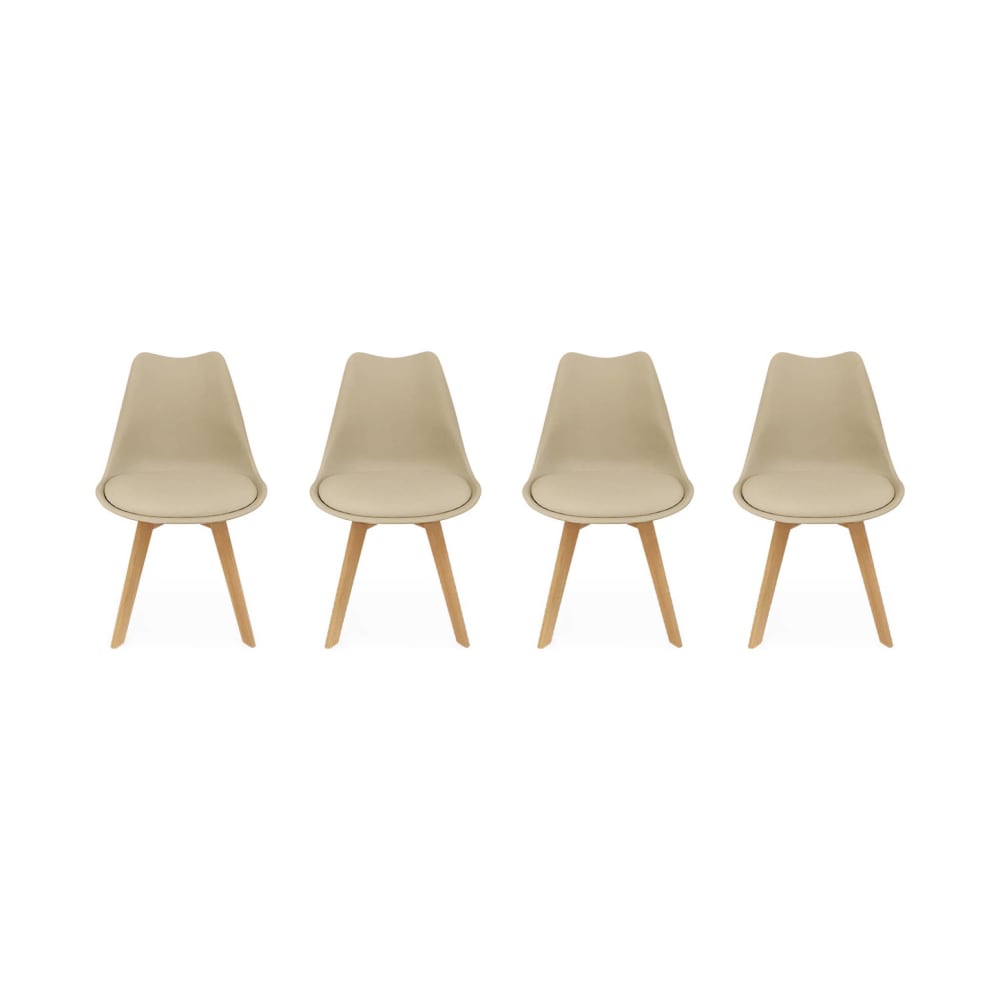 Set 4 sedie scandinave imbottite, gambe in legno , cappuccino