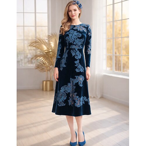 Linea ad A Lunghezza al pavimento Abiti da Ballo Abito da Sera Da principessa Abito formale Elegante Monocolore Setoso Manica Lunga Scollo a Barca Matrimonio Formale Abito Champagne per la Madre