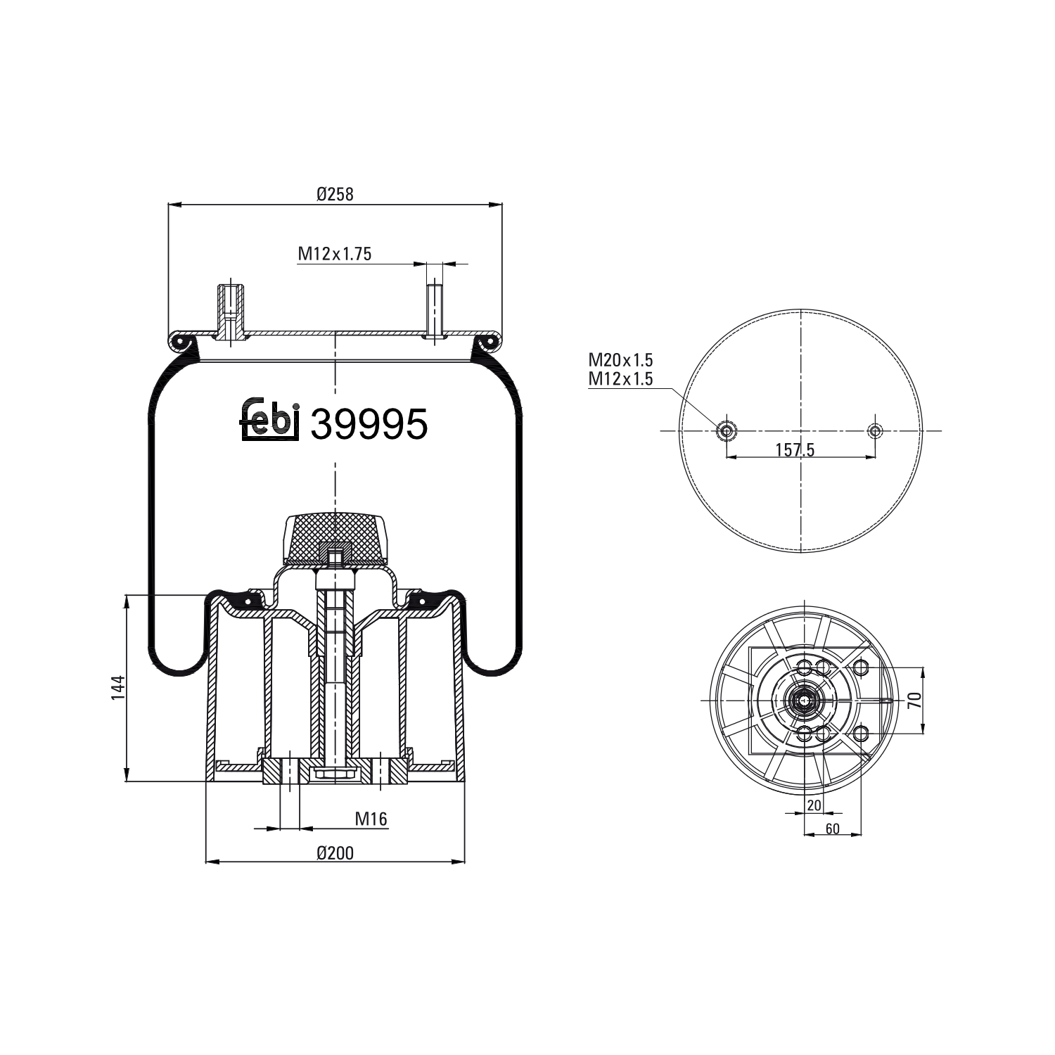 FEBI BILSTEIN Federbalg, Luftfederung 39995 Universal mit Kolben 258mm