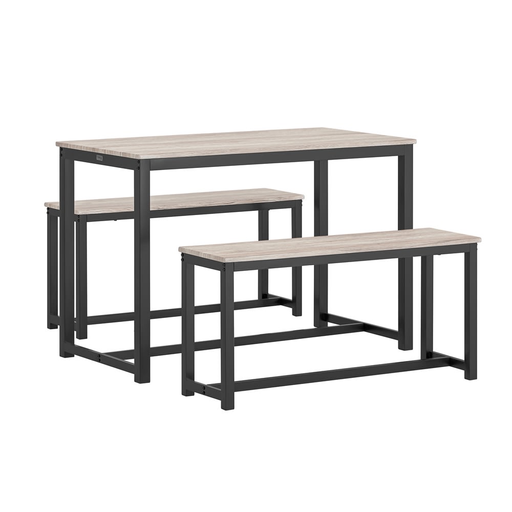Tavolo con 2 panche marrone e nero in metallo e mdf