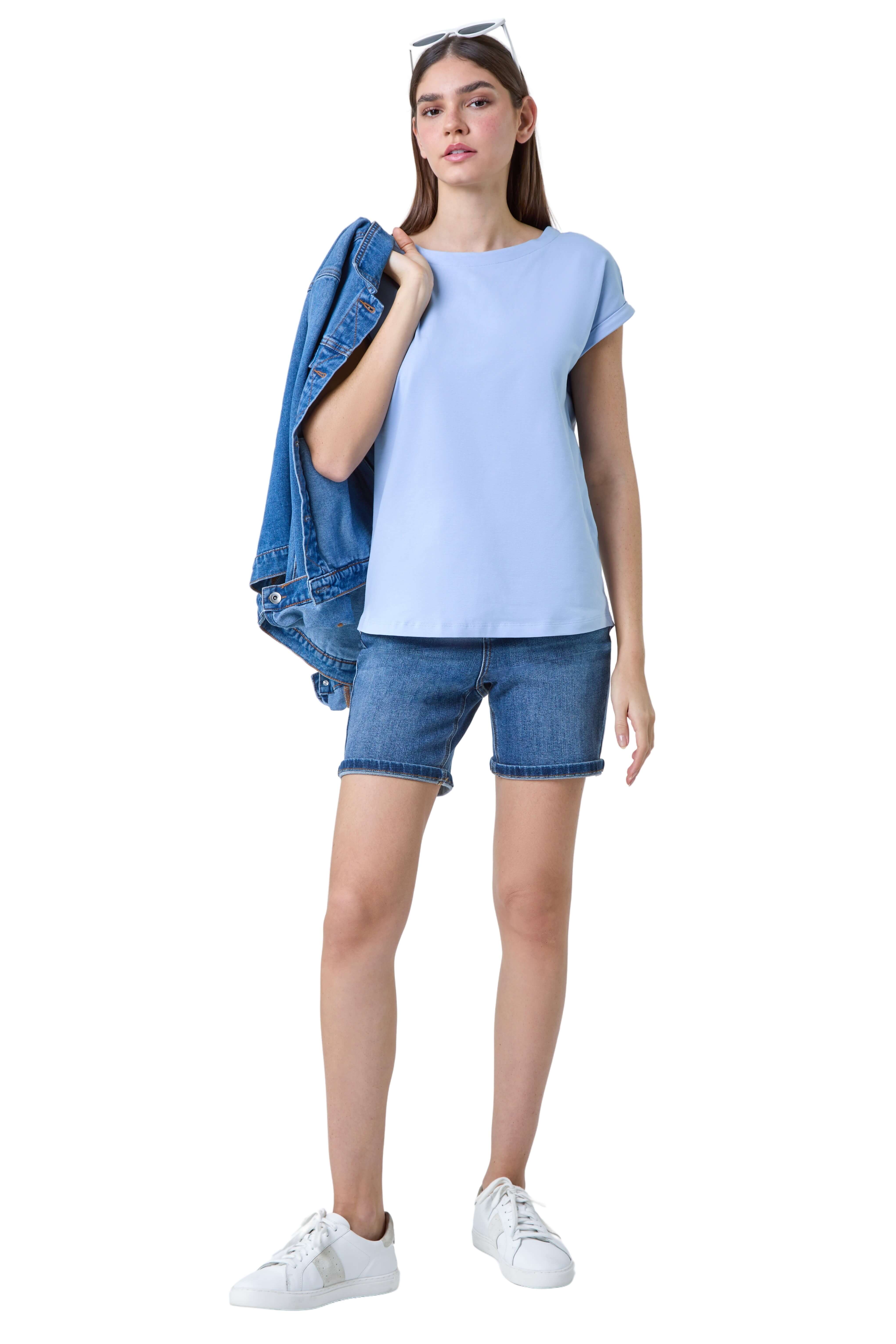 Roman Womens Plain Stretch Cotton Jersey T-shirt - Sky Blue - Size 12 UK | Roman Sale | Discount Designer Brands
