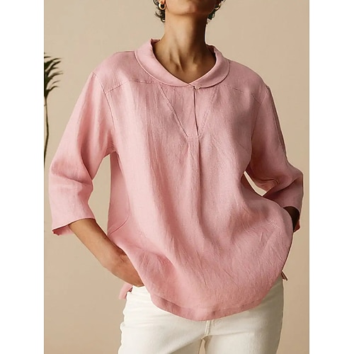 Per donna Blusa Tinta unica Elegante Casual Manica 3/4 Colletto a Camicia Top Regolari Quotidiano Bottoni Blu Nero Rosa Arancione Marrone Estate Primavera Autunno