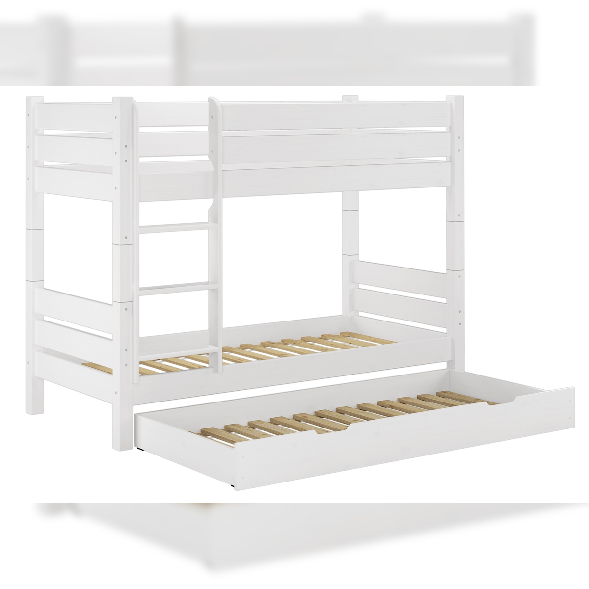 Erst-Holz Etagenbett Kiefer weiß 90x200cm Nische 80 teilbar 3 Rollroste Gästebettkasten 60.16-09WT80S7