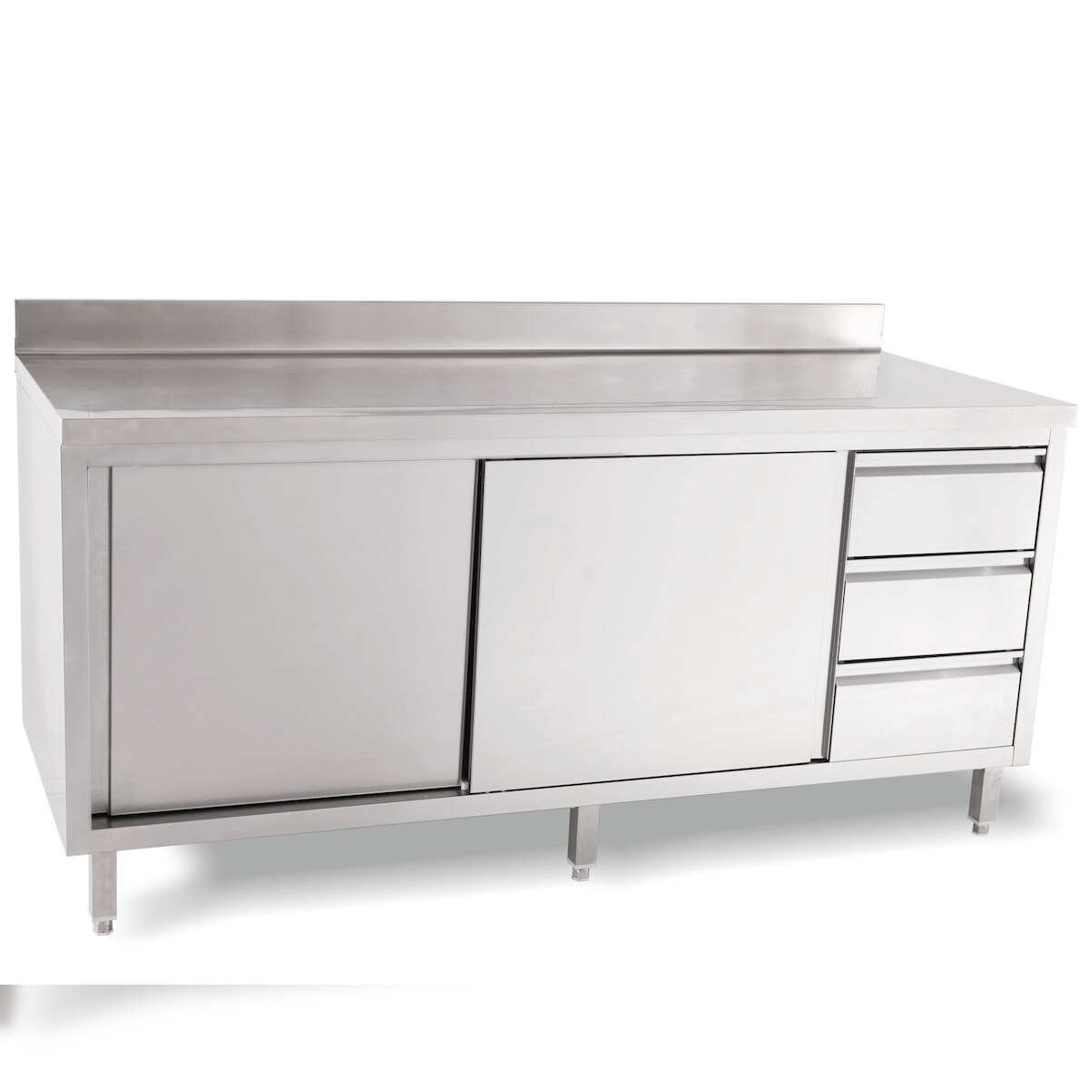 Arbeitsschrank mit Schiebetüren mit 50 mm Aufkantung Schubladen rechts