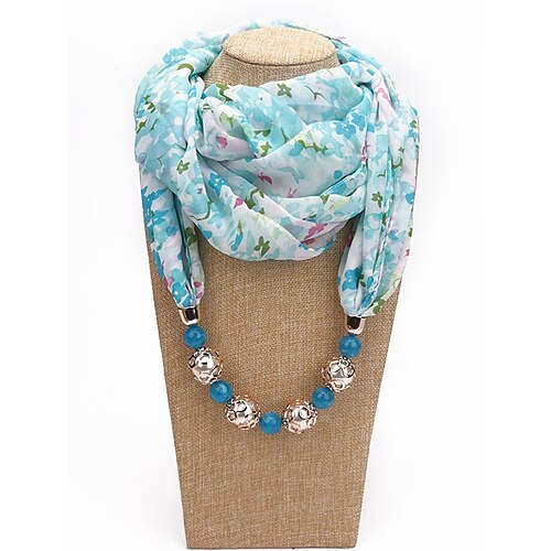 Collana con sciarpa in chiffon bohémien da donna, sciarpa infinita in morbido poliestere con stampa floreale e ciondolo di perline, accessorio di moda leggero per donna, perfetto per l'abbigliamento casual quotidiano, per le vacanze e i viaggi