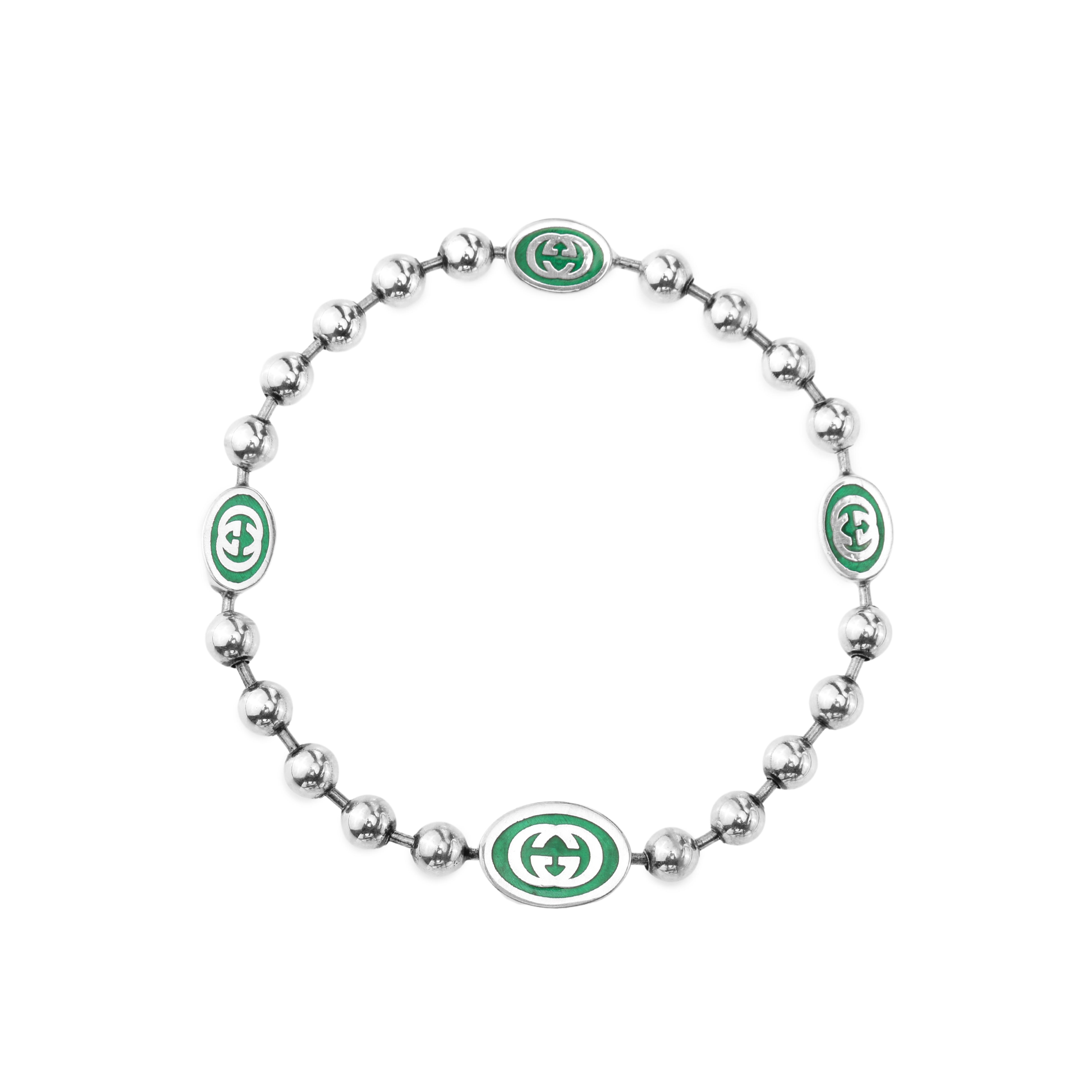 Gucci Interlocking Double G Pattern Vintage Style Shiny 925 Silver Bracelet Unisex bracelet Green 701609-J8410-8414