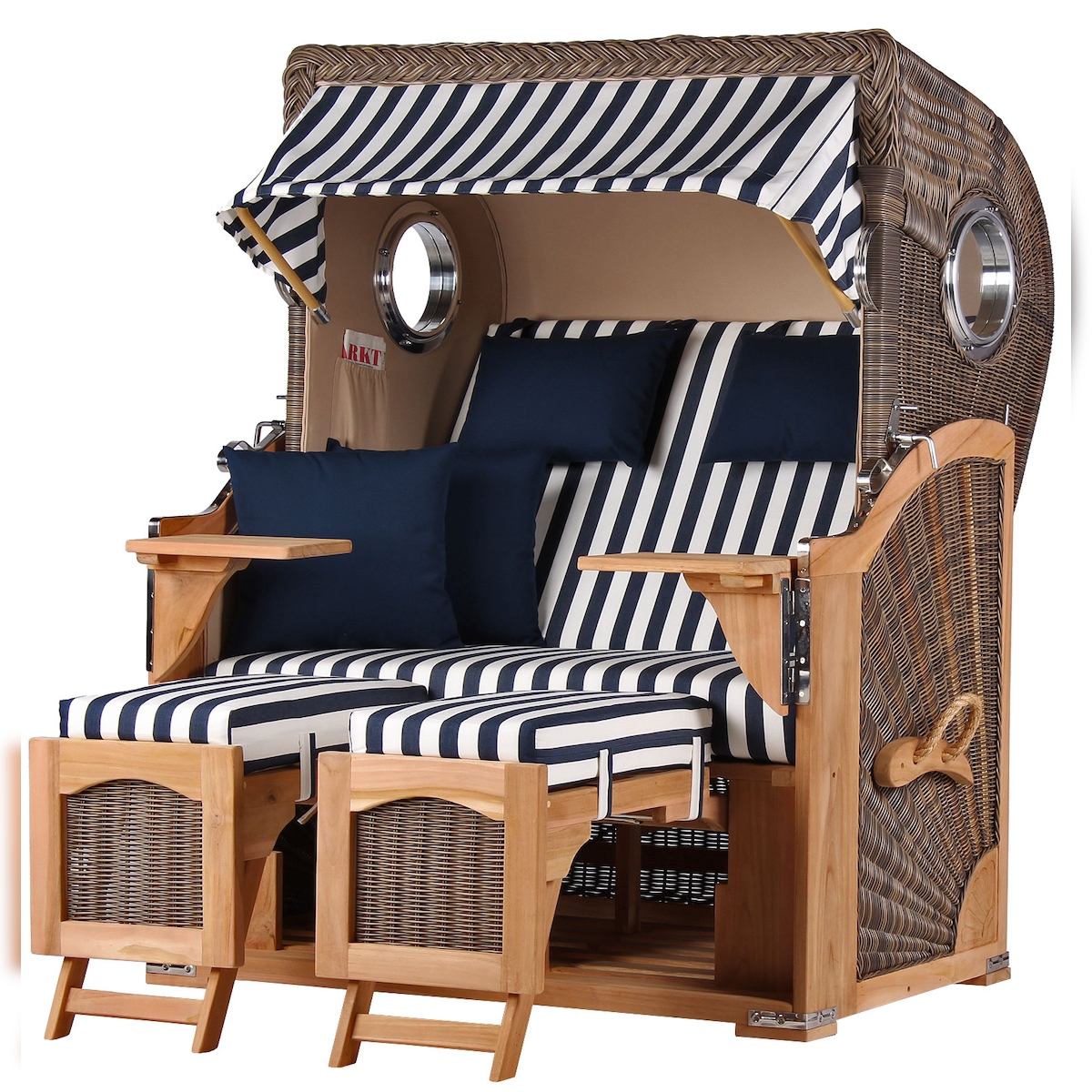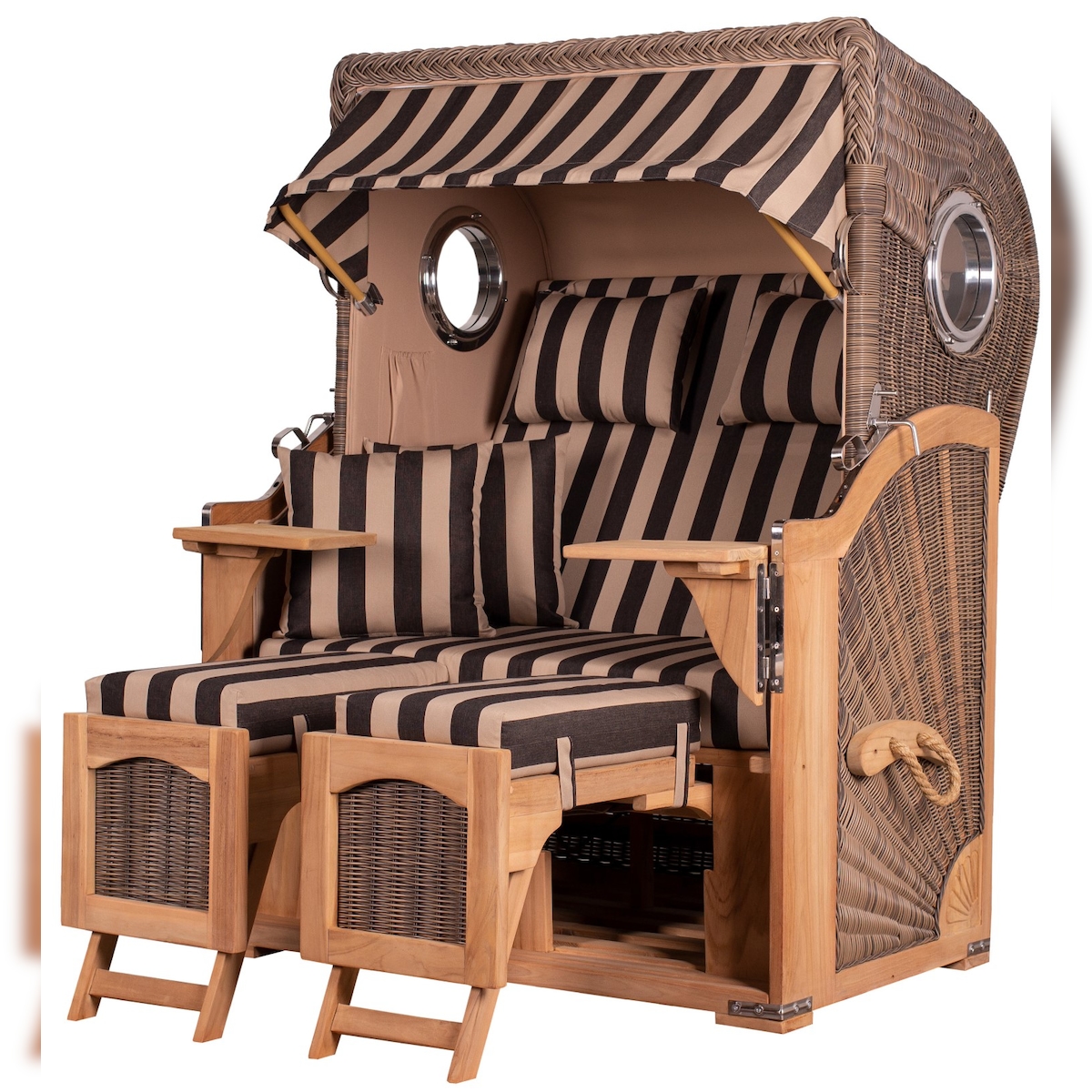 Mr. Deko Strandkorb - bene living - Ammersee Teak Bullauge - PE grau - Modell 581 - Zweisitzer inkl. Liftersystem