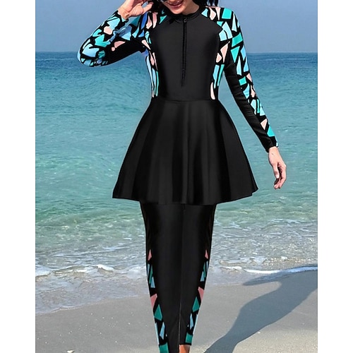 Per donna Top sottomuta Costume da bagno 2 pezzi Stampato Protezione UV Elastico Manica Lunga Costume da Bagno Con zip Lato arricciato Surf Spiaggia Nuoto Estate