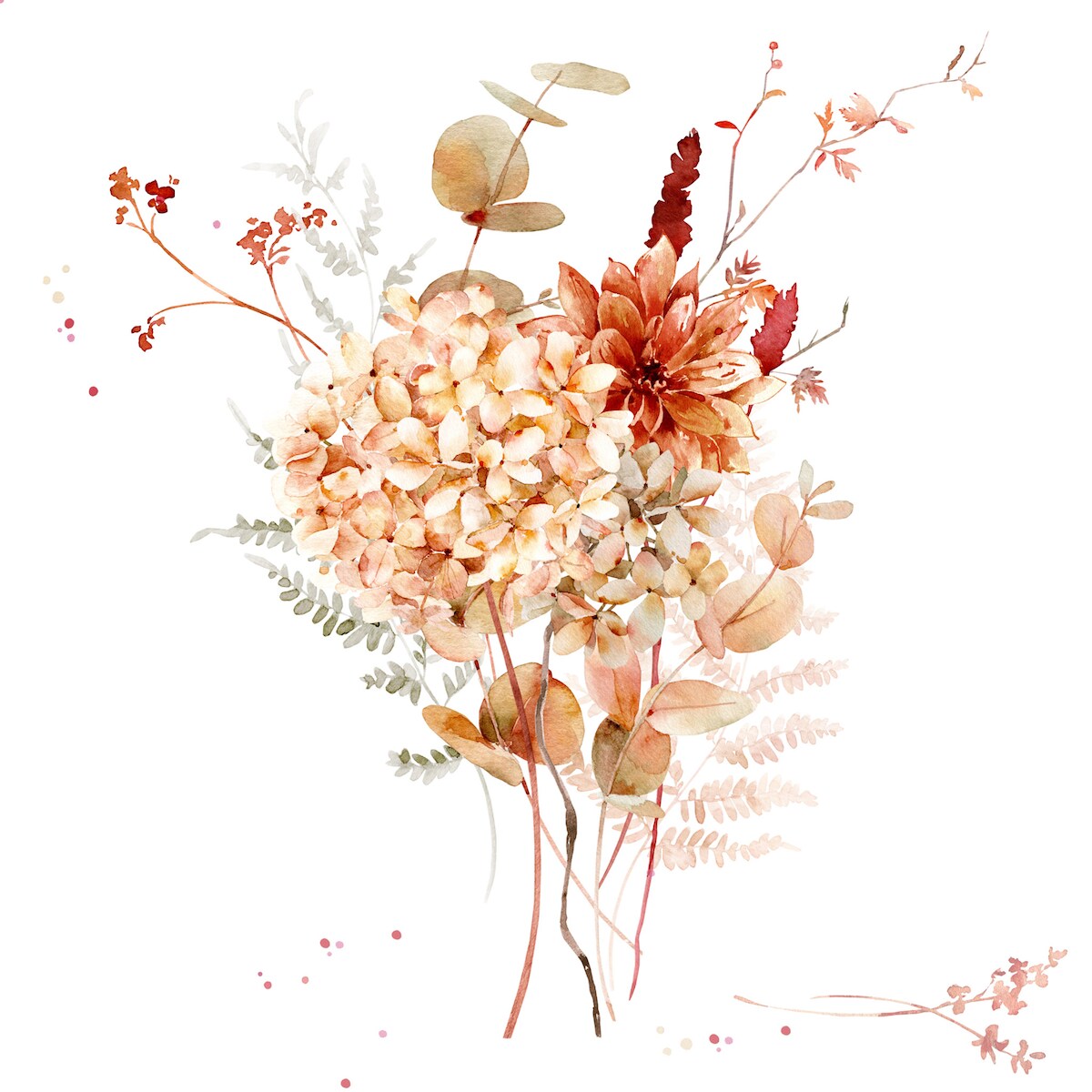 ti-flair 20 Servietten Papier 33x33cm 3-lag Einweg Papierservietten mit Hortensien Eukalyptus Trockenblumen Partyservietten Motivservietten Lunchservietten