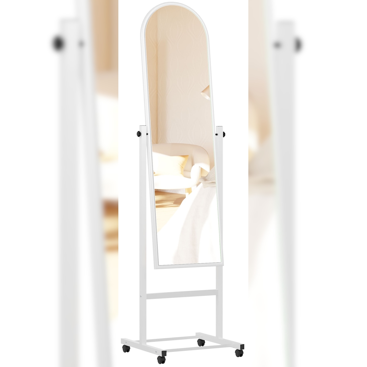 DELUKE Standspiegel VERONA - Holz Weiß 39x39x151 cm | Mobiler Ganzkörperspiegel Freistehender Spiegel Mit Rollen