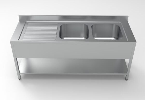 orange Arbeitstisch Edelstahl PRO 85 x 180 x 70cm, mit Grundboden, mit Aufkantung, fertig montiert