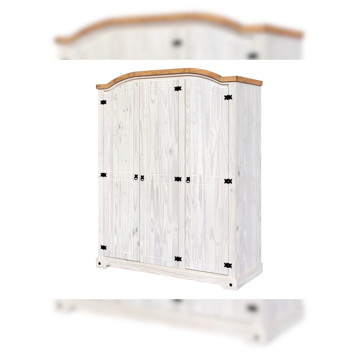 SIT Möbel Kleiderschrank | 3 Türen | Kiefer-Holz massiv | Weiß | B 150 x T 56 x H 188 cm | 19001-14 | Serie SCHRANK