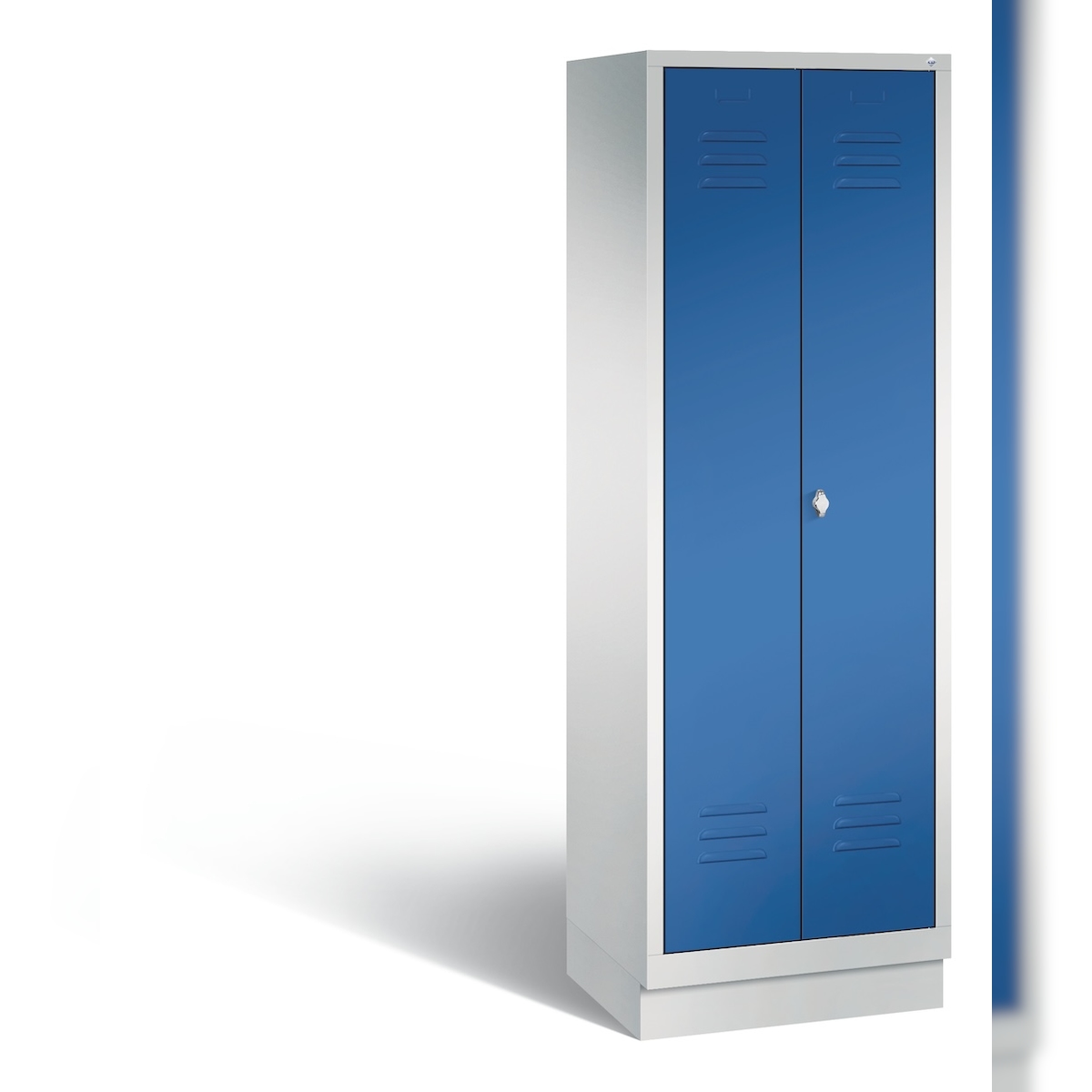 C+P Spind Classic mit Sockel | 2 Abteile mit verkürzte Mitteltrennwand & 4 Fachböden | HxBxT 180x30x50cm | Lichtgrau/Enzianblau von PROREGAL