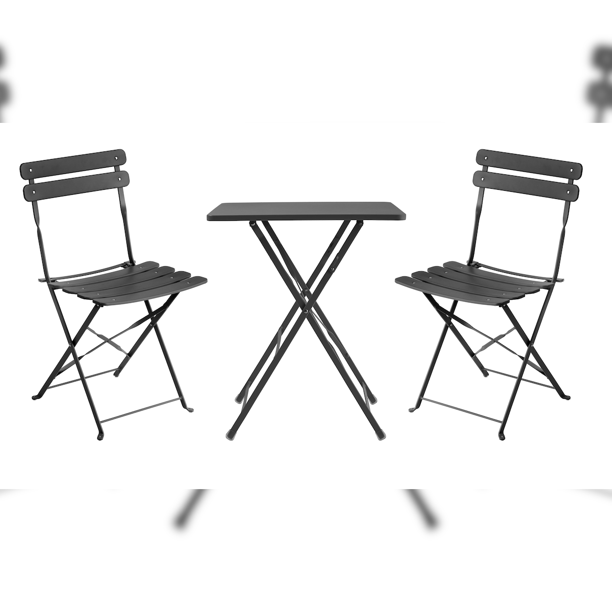 METRO PROFESSIONAL Bistroset klappbar Trigo, 3-tlg., Stahl, 1 Esstisch, 2 Stühle, dunkelgrau