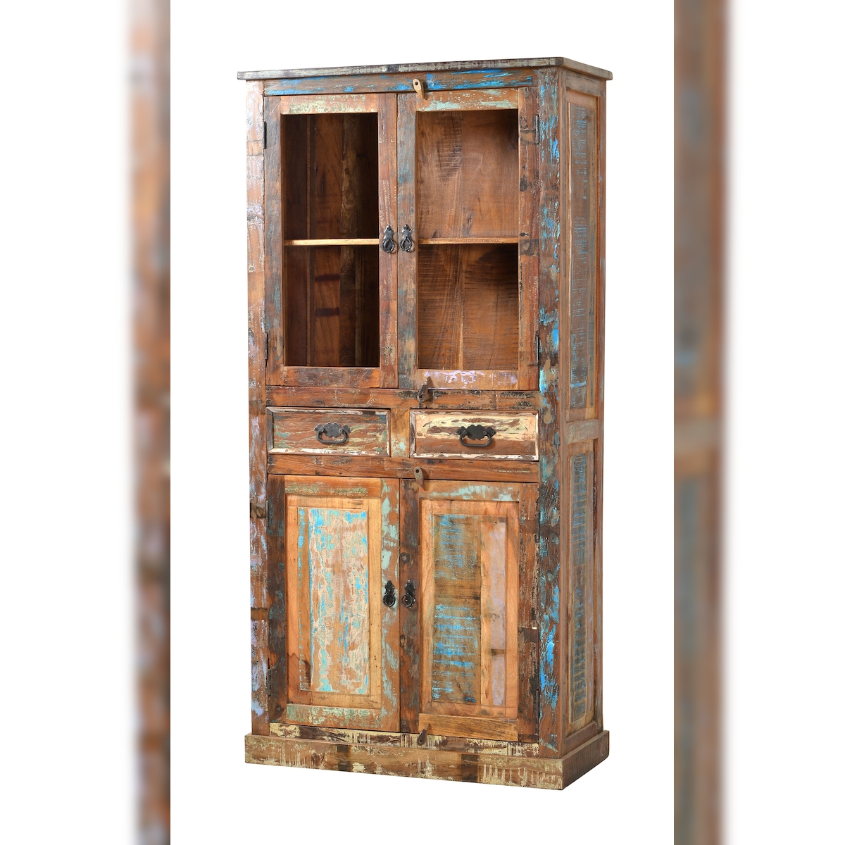 SIT Möbel Vitrine aus buntem Altholz | 2 Schubladen, 4 Türen | B 90 x T 40 x H 180 cm | 09108-98 | Serie RIVERBOAT