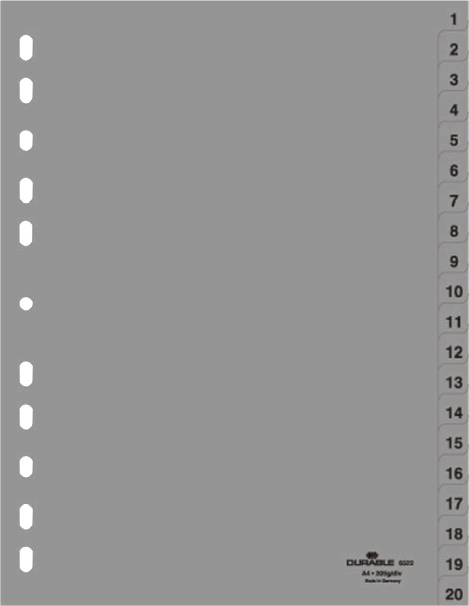 Durable Register A4 1-20 PP grau Packung mit 20 Stück
