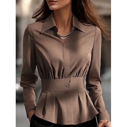 Per donna Camicia elegante Blusa Tinta unica Elegante Essenziale Casual Manica Lunga Collo ripiegato Top Regolari Quotidiano All'aperto Lavoro Blu Nero Bianco Marrone Estate Primavera Autunno Inverno