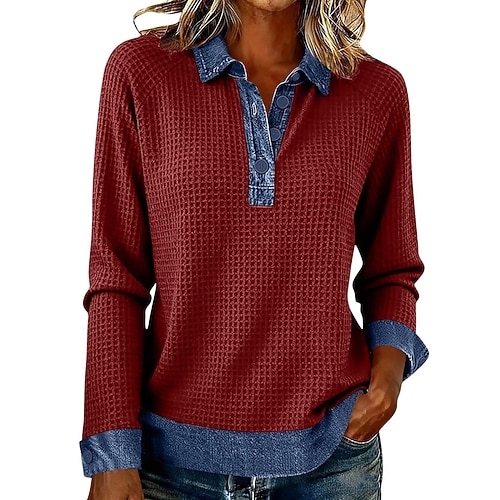 Per donna Camicia Blusa Patchwork Semplice Elegante Vintage Manica Lunga Colletto a Camicia Top Regolari Quotidiano Ferie Uscire Rosso Blu marino Azzurro cielo Viola Verde Primavera Autunno