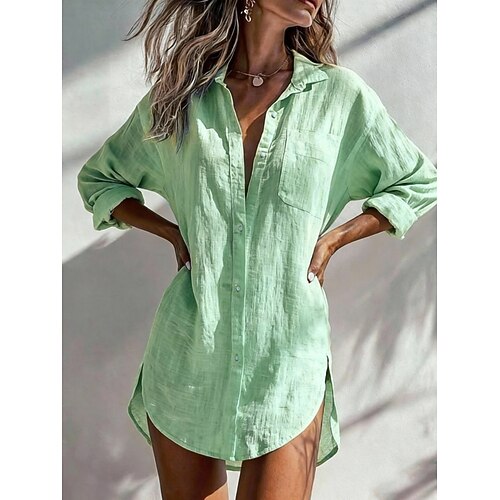 Per donna Abito Lungo Maxi Abito Misto cotone Abito Camicia Vestito a caftano Vestito Casual Elegante Essenziale Casual Quotidiano Vacanza Vestibilità comoda Semplice Manica Lunga Colletto a Camicia