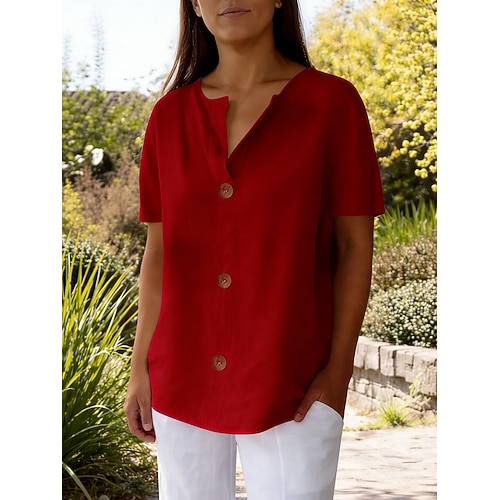 Per donna Camicia Estiva Camicia casual Blusa Tinta unica Elegante Essenziale Casual Manica Corta Scollo a V Top Regolari Quotidiano All'aperto Ferie Blu Giallo Rosso Grigio Estate Primavera Autunno