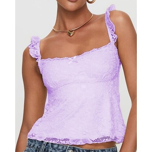 Per donna Blusa Canotta a canotta Maglietta senza maniche Bordo in pizzo Senza schiena Semplice Elegante Sexy Senza Maniche Colletto a Camicia Top corti Quotidiano Abbigliamento da sera Ferie Blu