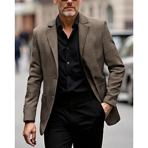 Per uomo Laurea Blazer Affari Cocktail party Ricevimento di matrimonio Moda Casual Primavera Autunno Poliestere Tinta unica Tasca Bottoni Confortevole Monopetto Giacca Caffè Azzurro chiaro Grigio