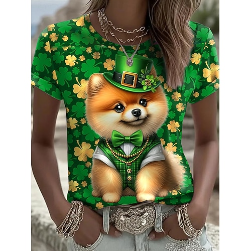 Maglietta da donna per il Giorno di San Patrizio grafica gatto trifoglio vintage elegante classica a maniche corte collo rotondo top regolari stampa giornaliera verde chiaro verde estate primavera