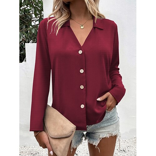 Per donna Camicia popover Camicia casual Blusa Tinta unica Vacanza Elegante Essenziale Manica Lunga Collo ripiegato Scollo a V Top Regolari Quotidiano All'aperto Lavoro Blu Bianco Giallo Rosa Rosso