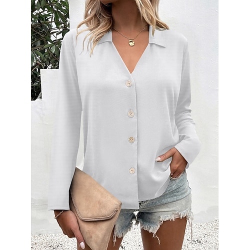 Per donna Camicia casual Camicia con Bottoni Blusa Bottoni Tinta unica Streetwear Elegante Manica Lunga Collo ripiegato Scollo a V Top Regolari Quotidiano All'aperto Ferie Nero Bianco Verde militare