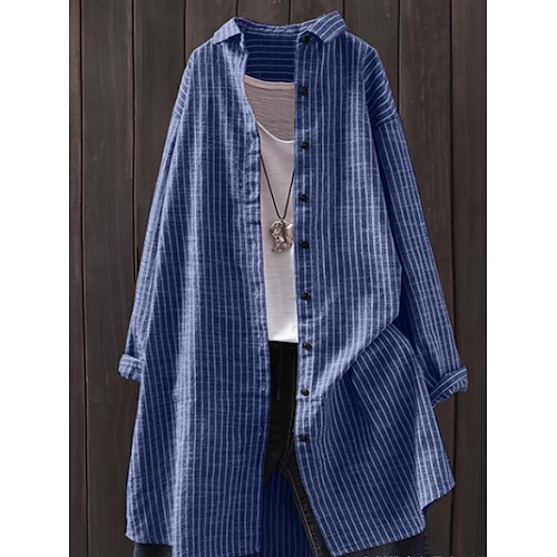 Per donna Camicia casual Camicia con Bottoni Blusa Patchwork Bottoni Tinta unica Moda Quotidiano Casual Manica Lunga Collo ripiegato Top lunghi Ferie Abbigliamento mare Abbigliamento da vacanza Blu