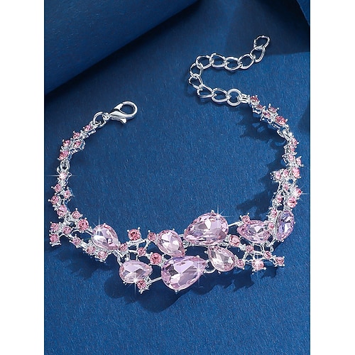 Bracciale da donna con strass di cristallo - braccialetto regolabile in argento scintillante per feste di fine anno, matrimoni e occasioni serali