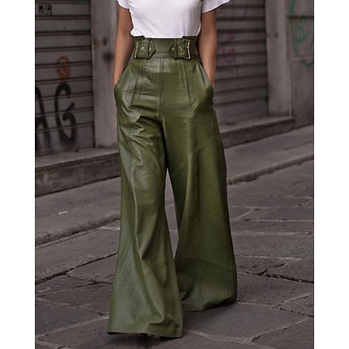 Per donna Gamba larga Pantaloni di pelle Streetwear Casual Lunghezza intera Naturale Semplice Tasca Elastico in vita Confortevole All'aperto Vacanza Ferie Nero Verde militare Autunno Vestibilit