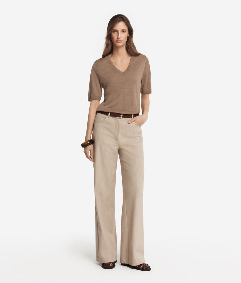 Falconeri T-shirt con scollo a V in lino e cotone Donna Grano Taglia M