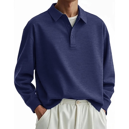 Per uomo POLO Camicia da golf Golf Informale Sport Bavero Manica lunga Di tendenza Essenziale Liscio Pulsante Tasche Primavera Autunno Standard Esercito verde Nero Bianco Rosso Blu marino Verde
