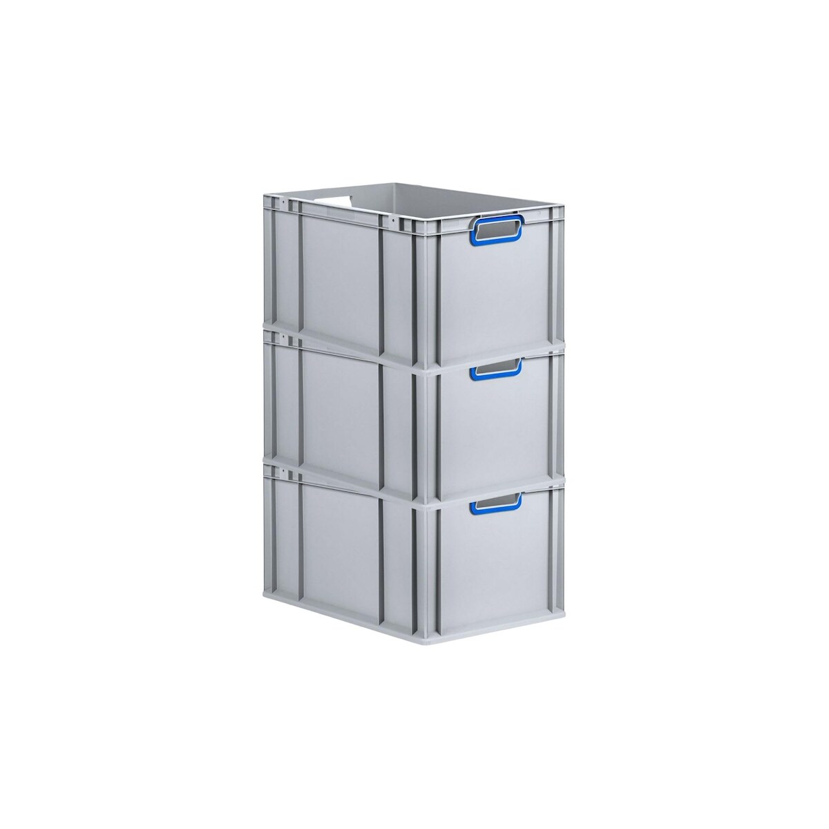 PROREGAL SuperSparSet 3x Eurobox NextGen Color, HxBxT 32x40x60cm, 65 Liter, Griffe blau offen, Grau, Eurobehälter, Box, Transportbehälter