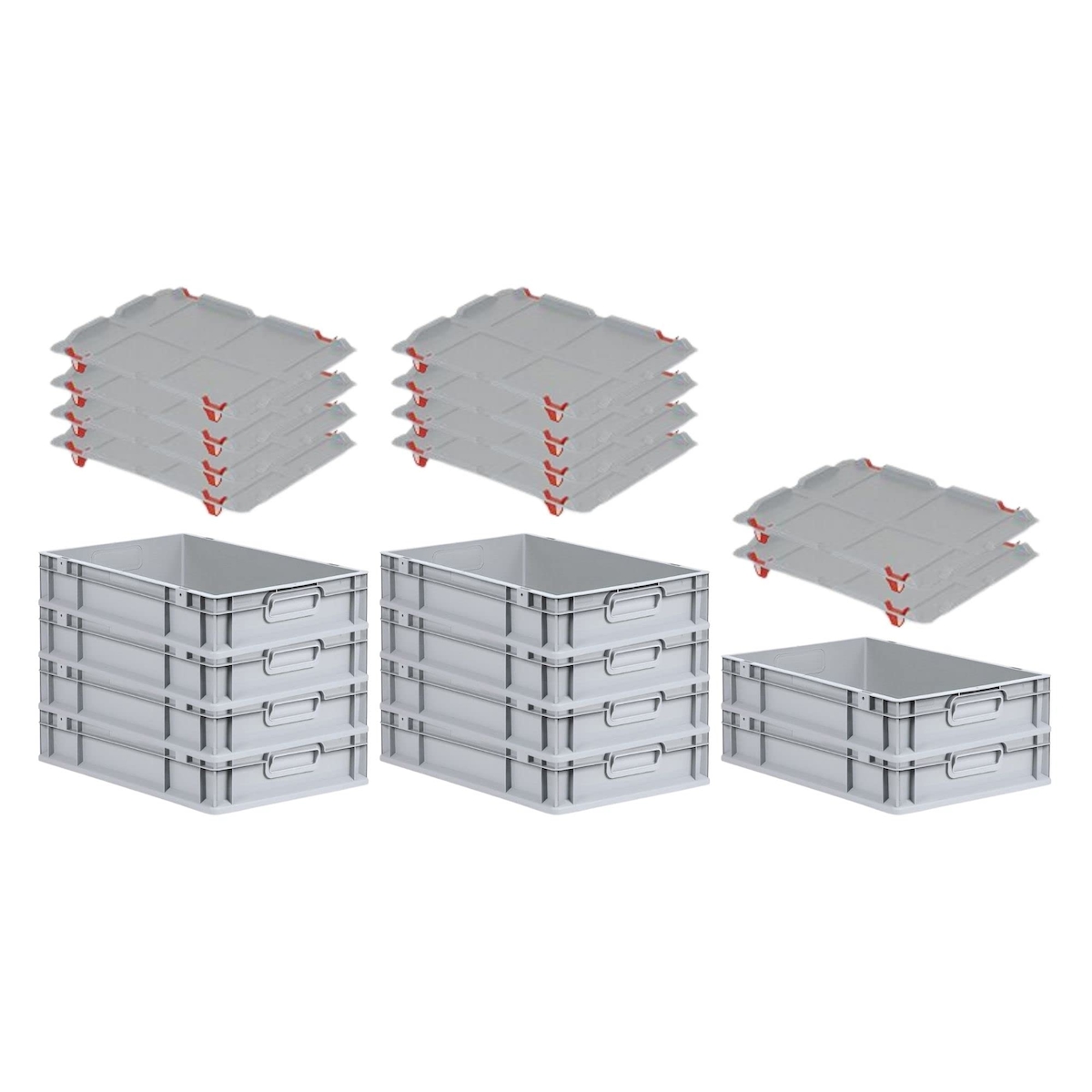 PROREGAL SparSet 10x Eurobox NextGen Economy mit Auflagedeckel & 4x Verschlüsse Rot, Griffe zu, HxBxT 12x40x60cm, 23L, Eurobehälter, Box