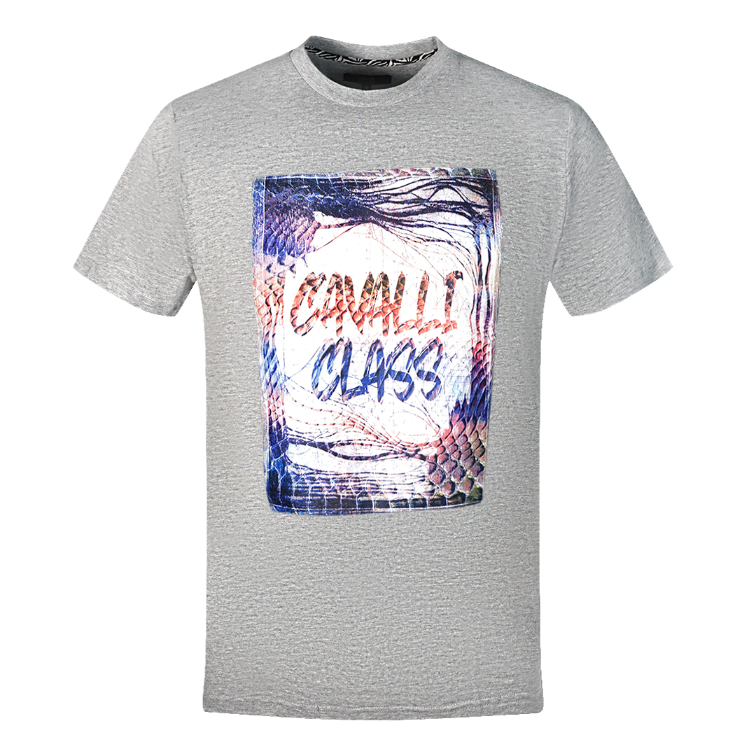 Cavalli Class Mens Box Logo Grey T-shirt Cotton - Size Medium | Cavalli Class Sale | Discount Designer Brands