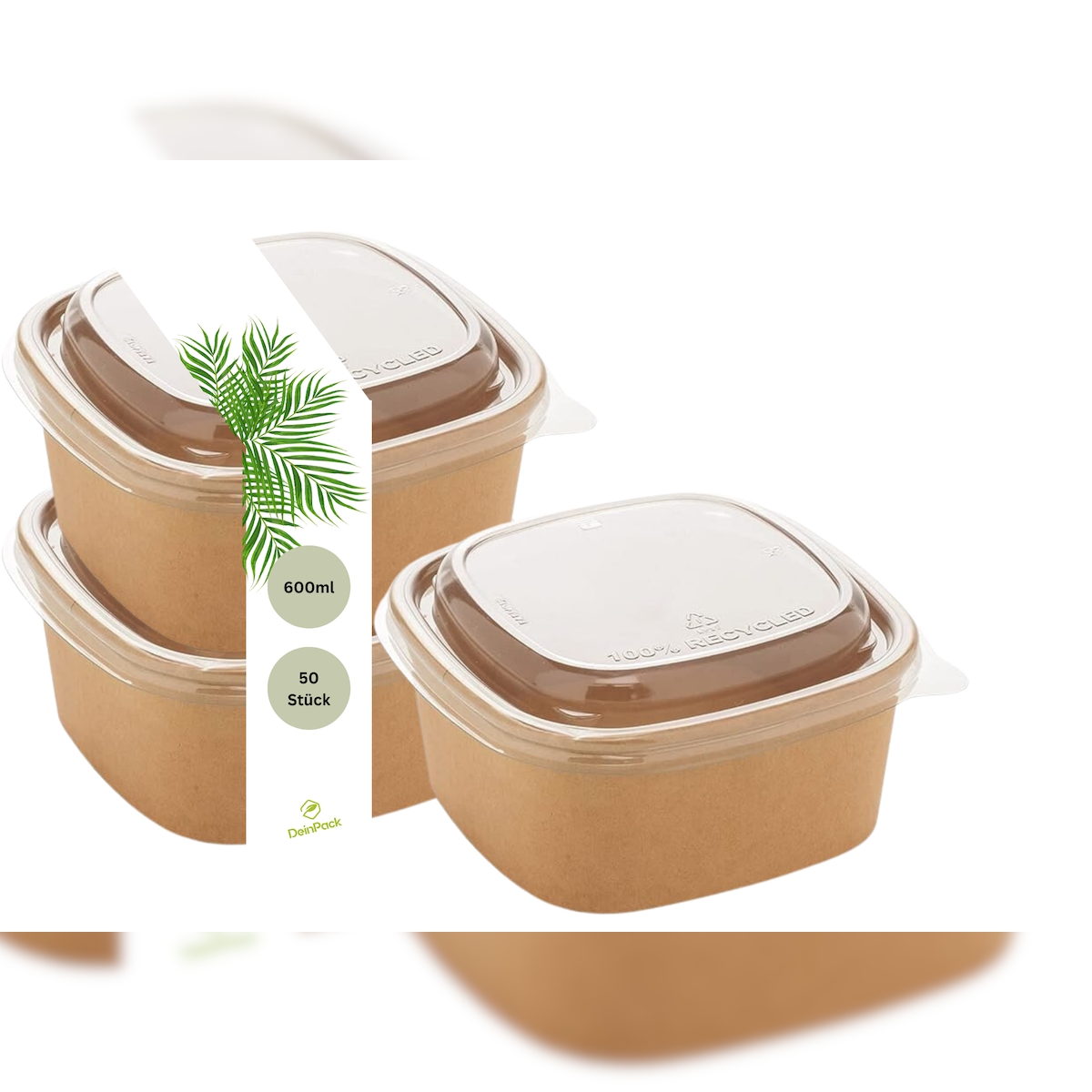 DeinPack 50 Salatschale mit PET Deckel braun eckig 600 ml