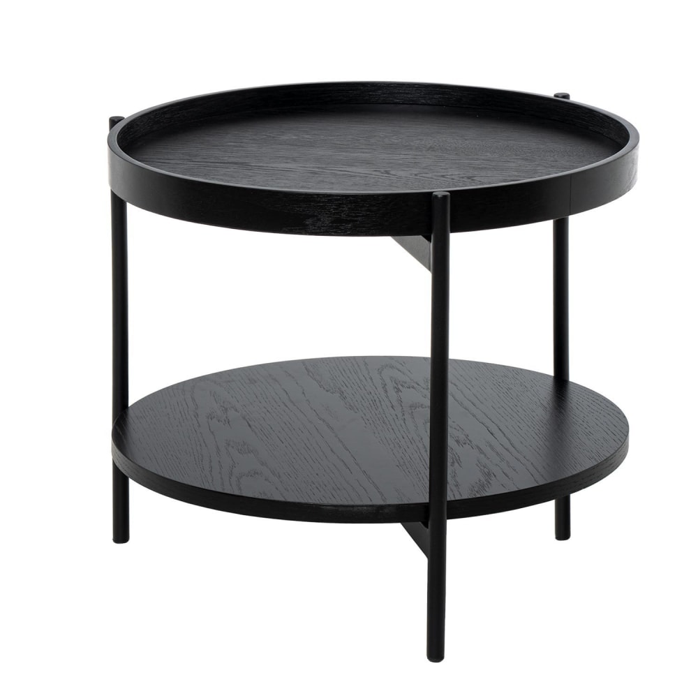Tavolo da caffè in legno con doppio piano e gambe nere