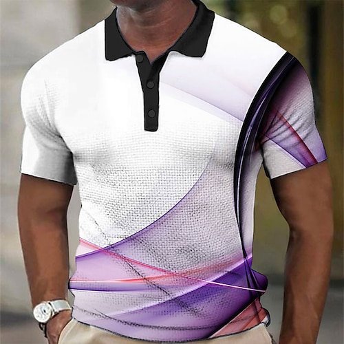Per uomo Magliette Polo a Nido d'Ape Polo Manica Corta Magliette polo Collo ripiegato Business Casual Abbigliamento quotidiano 3D Stampato Estate Nero Bianco Giallo