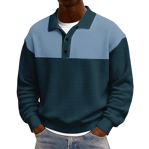 Per uomo Blocco di colori Magliette Polo a Nido d'Ape Manica Lunga Magliette polo Bavero Casual Scuola Athleisure Abbigliamento quotidiano Stampa 3D Primavera Autunno Blu Nero Marrone