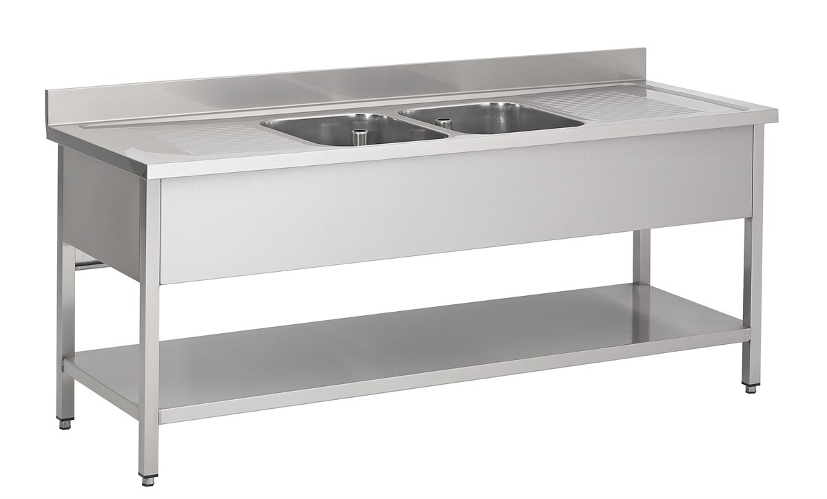 Chefgastro 700 Spültisch Grundboden 2 mit te 2000 BxTxH 2000x700x850mm