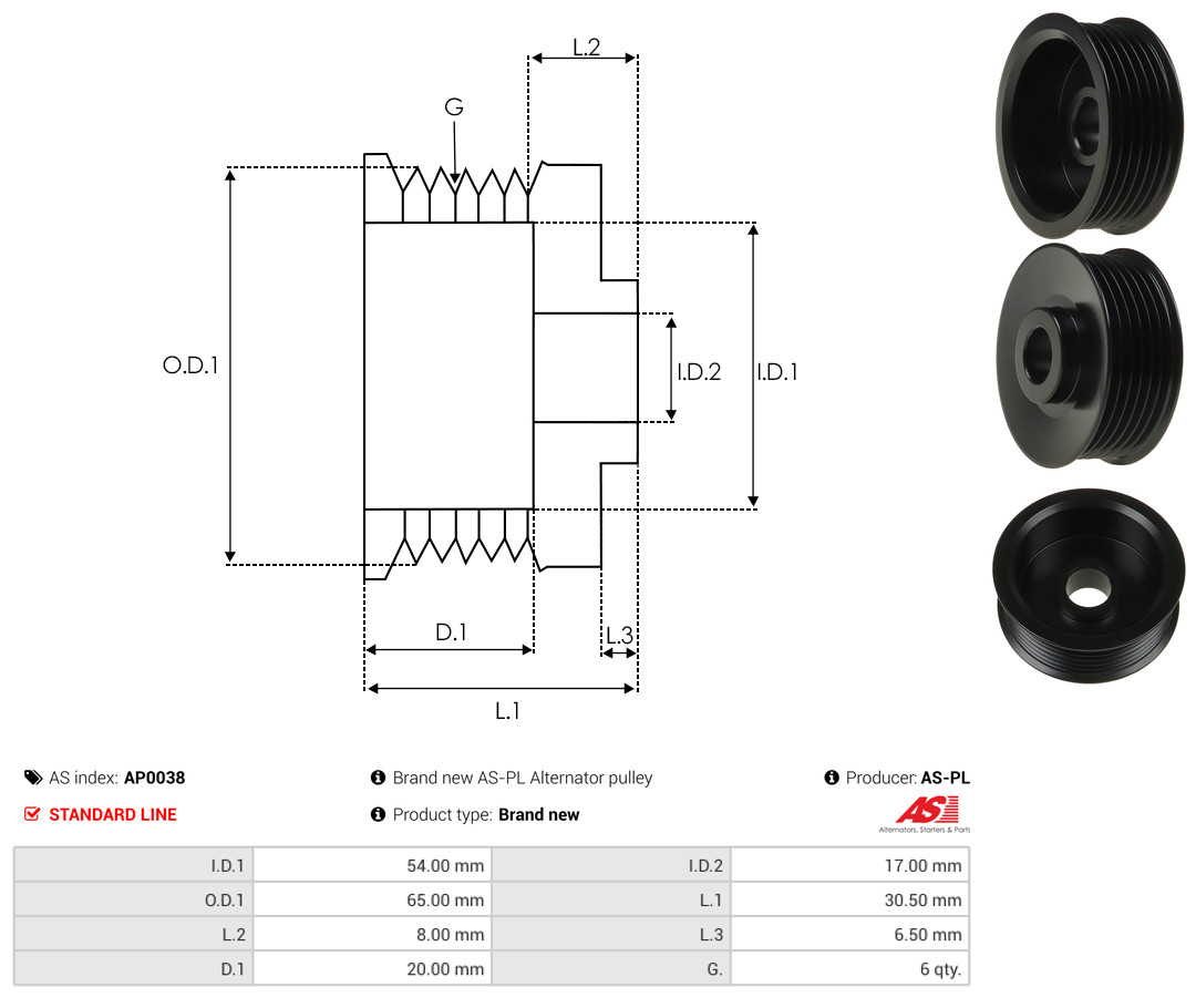AS-PL Riemenscheibe, Generator AP0038 Universal für VW 078903119H