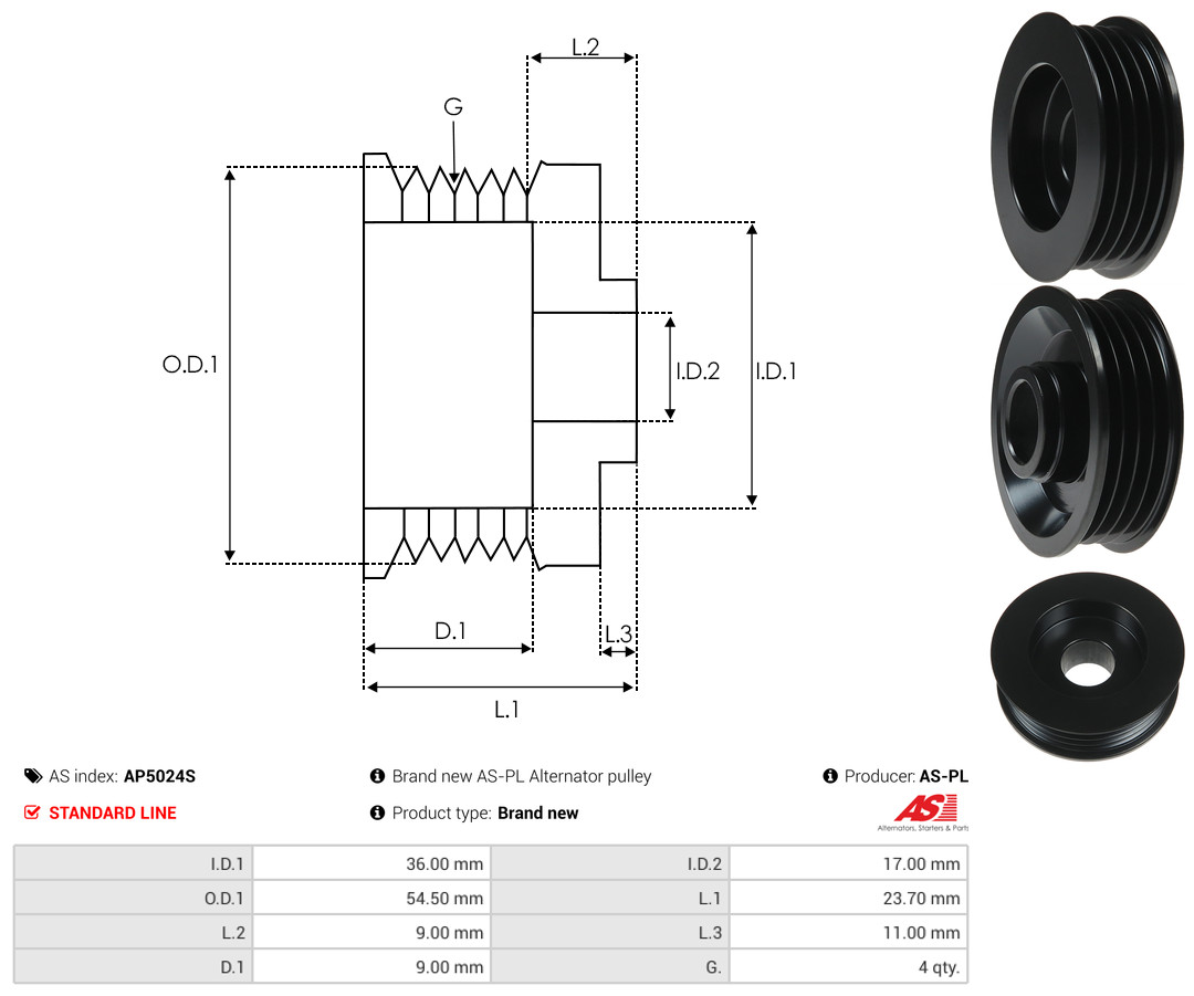AS-PL Riemenscheibe, Generator AP5024S Universal für MITSUBISHI MAZDA A679C12670 B3C7-18-W10 MD618884